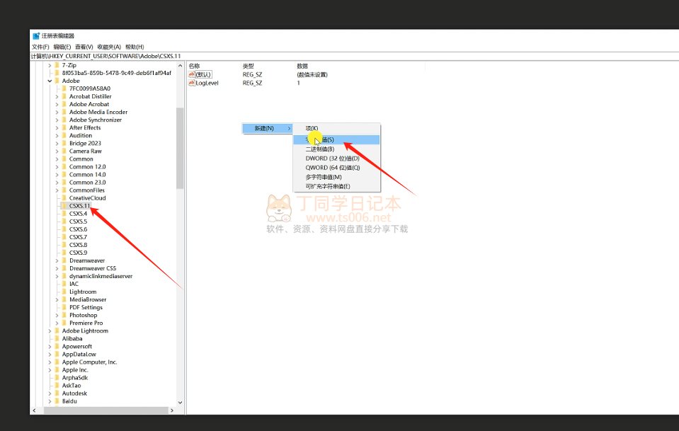 10.打开之后依次找到目录,在右边空白处右击-新建-字符串值