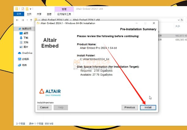 Altair Embed 2024图文安装教程步骤如下: