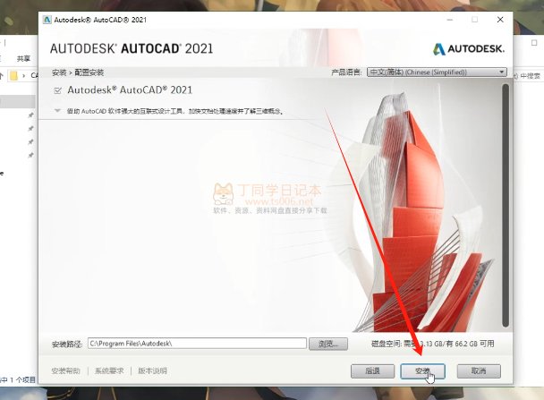 CAD 2021图文安装教程步骤如下: