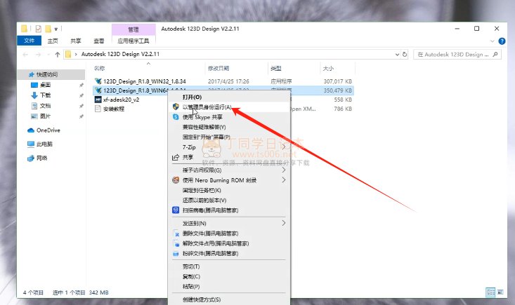 1.解压后打开文件夹,右击以管理员身份运行