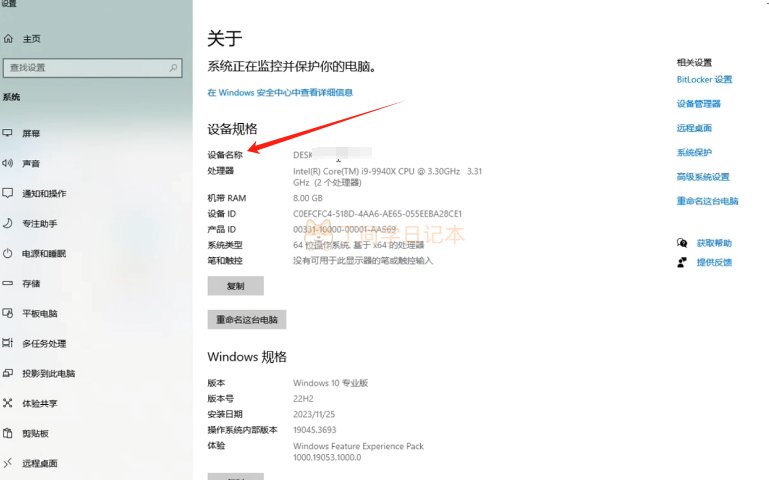 右击此电脑,属性里面可以查看电脑名字