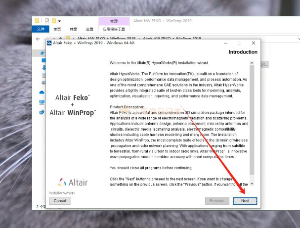 Altair HW FEKO+WinProp 2019安装教程步骤如下: