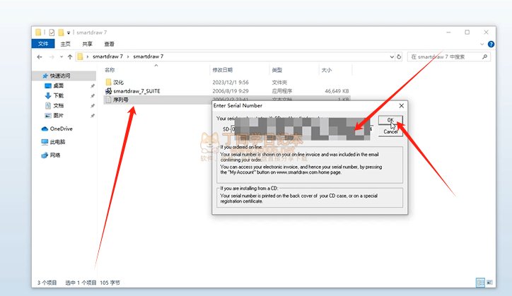 3.复制序列号,粘贴到右边,点击OK