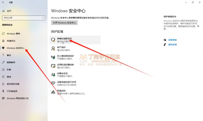 8.解压文件之前先关闭杀毒软件,打开windows设置,点安全中心-病毒防护
